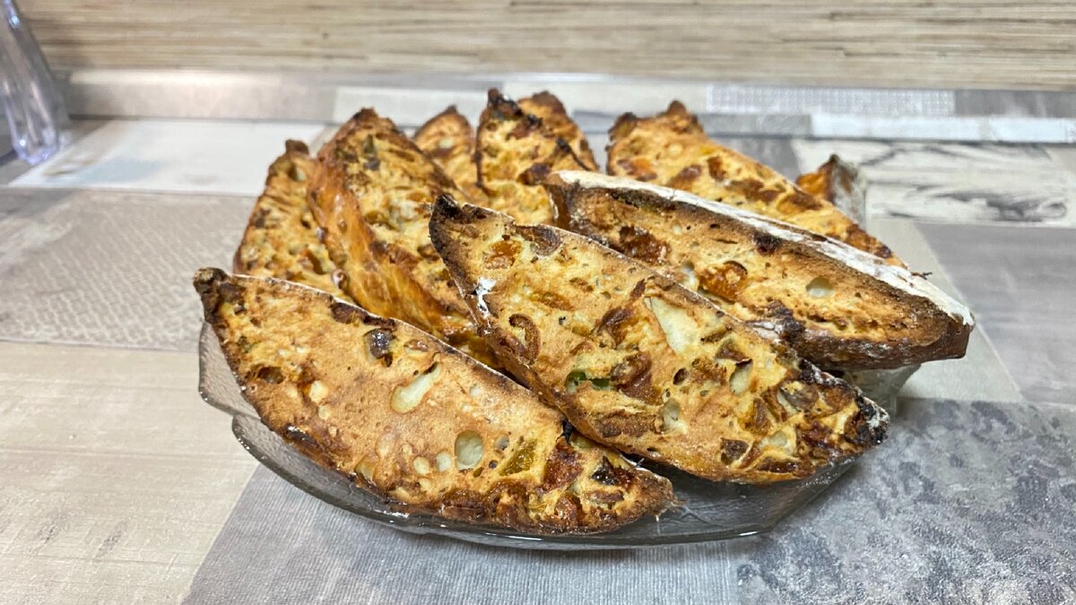 Достаём из духовки и нарезаем на тонкие пластины (толщиной 15-20 мм), раскладываем печенье на решетку и отправляем в разогретую духовку 250-260 градусов на 5-7 минут с одной стороны, затем переворачиваем и готовим ещё 3-5 минут. Печенье должно быть сухое.