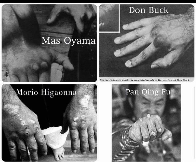 И речь не о деревенских дурачках, которые работают по принципу "бери больше, кидай дальше", а о признанных мастерах! Их заслуженный авторитет не базируется на "страшных кулаках", но молодые каратисты нередко видят именно ороговевшую кожу серого цвета, разбитые суставы и т.п. Множество молодых и амбициозных энтузиастов хотят быть похожими на старых мастеров. И не всегда эта "похожесть" базируется на истинном мастерстве, случается, что вся "похожесть" - это те самые разбитые изуродованные кулаки. Молодые "энтузиасты" дубят кожу в формалине, натирают кулаки наждачной бумагой и выкладывают свои травмированные руки в интернете, видимо считая их достижениями. Нет, конечно, есть немало настоящих энтузиастов, которые годами тренируются на макиваре по несколько часов в день, набивают руки в вёдрах с песком, или с рисом, даже с галькой. Но, я уверен - их цель это не уродливые клешни вместо рук, а правильно "созданные" кулаки. Во всяком случае, очень хочется на это надеяться.
