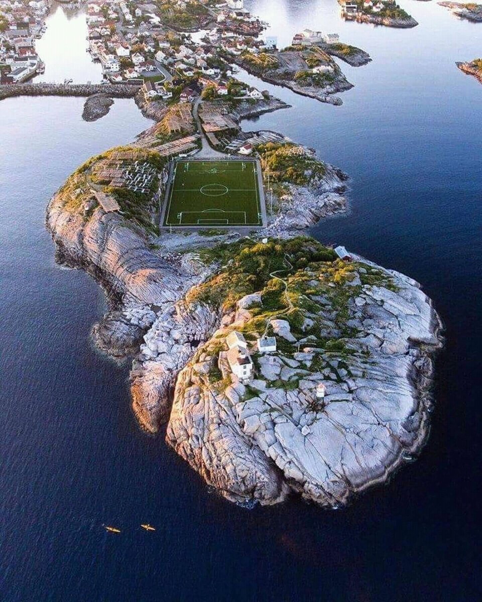 В Хеннингсвере на скалистых Лофотенских островах располагается футбольное поле с впечатляющими видами.