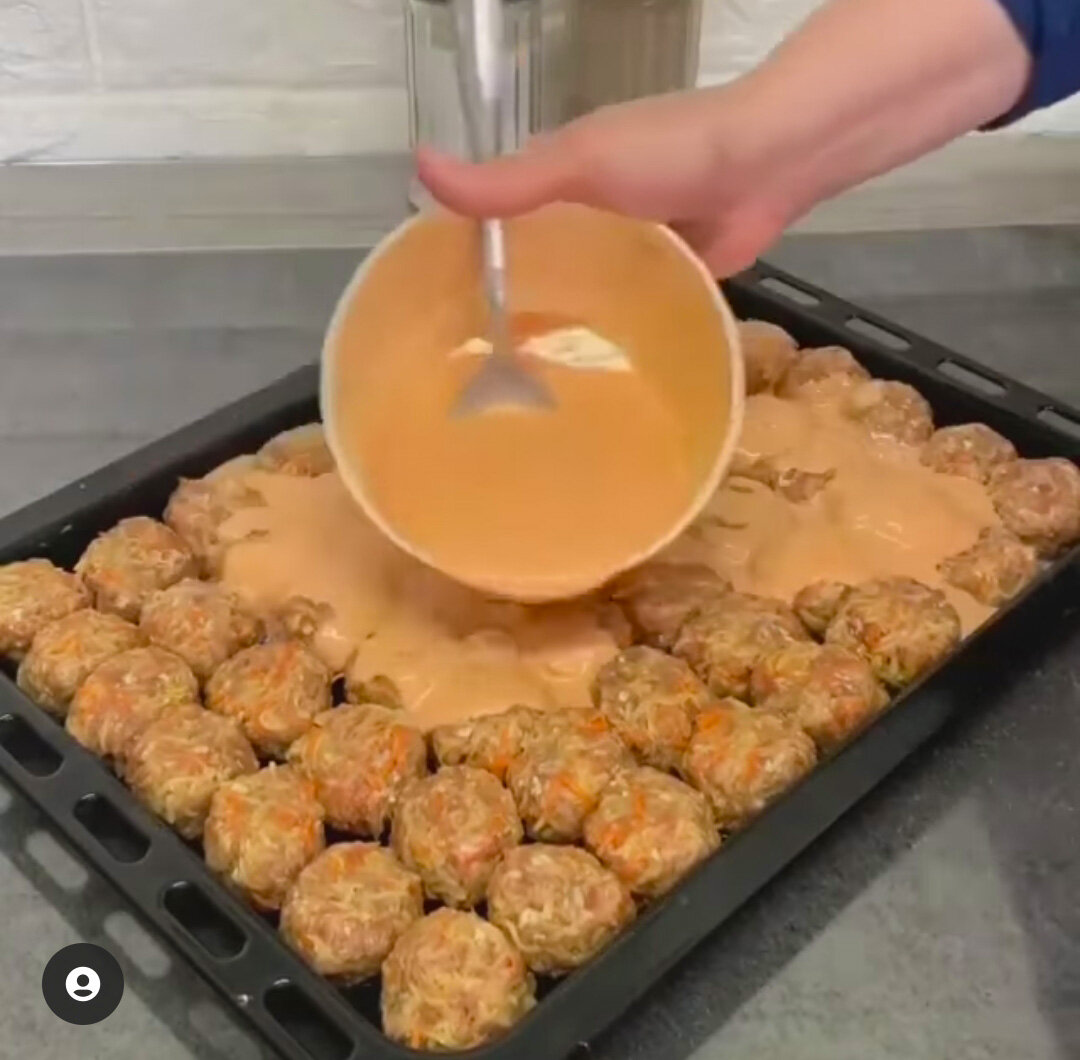 4. Лепим шарики, укладываем на смазанный растительным маслом противень одним слоем все шарики. И заливаем соусом ( для соуса - просто соединяем все ингредиенты ).