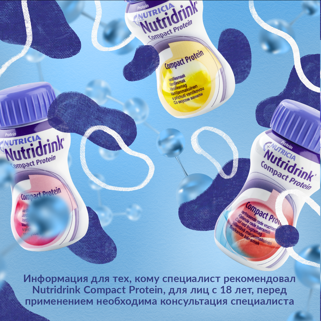 Информация для пациентов c диагностированным онкологическим заболеванием, которым специалист рекомендовал продукт специализированного питания Nutridrink Compact Protein. Имеются противопоказания, перед применением необходима консультация специалиста. Nutridrink Compact Protein предназначен для лиц старше 18 лет.