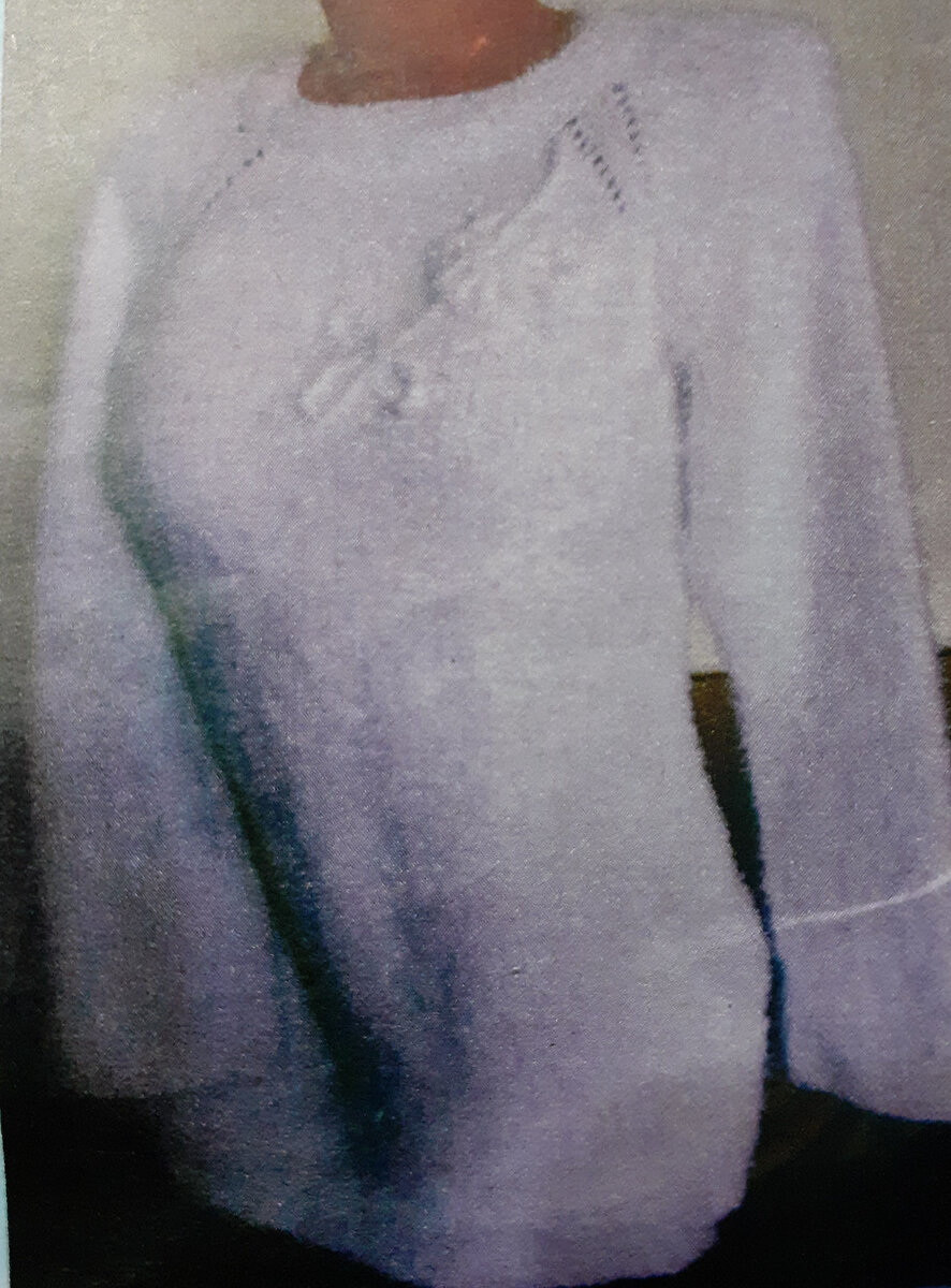 Если сложно, росток не вяжем, а просто вяжем регланом, пока регланная лента не будет 17-20 см длиной. Перед и спинку снимаем на дополнительную спицу или булавку. Делаем подрезы. По обе стороны рукава набираем дополнительно по 5 петель. Вяжем в технике "меджик луп" или другим удобным способом. Заканчиваем рукав12 рядами платочной вязки. Теперь возвращаемся к вязанию туловища. Если вязать кофточку приталенную, то после линии груди через каждые 5-6 рядов делать по бокам убавки, ниже уровня талии прибавлять по бокам из перекрещенных накидов. Или прибавляем петли из протяжки и вяжем их тоже перекрещенными, чтобы не было дырочек. Затем разделяем вязание на две части, по 5 петель по бокам снимаем на дополнительную спицу. Вяжем отдельно перед и спинку по 6см. Делаем обвязку платочной вязкой. Для этого на одной половинке поднимаем петли по бокам, на повороте из одной петли делаем 3 ( лицевая, накид, лицевая). При вязании обвязки захватываем постепенно по одной петле из 5 оставленных боковых петель или потом аккуратно пришиваем их иголкой. Так же заканчиваем вторую сторону. Украшаем по своему вкусу, например дополнив цепочкой из воздушных петель.
