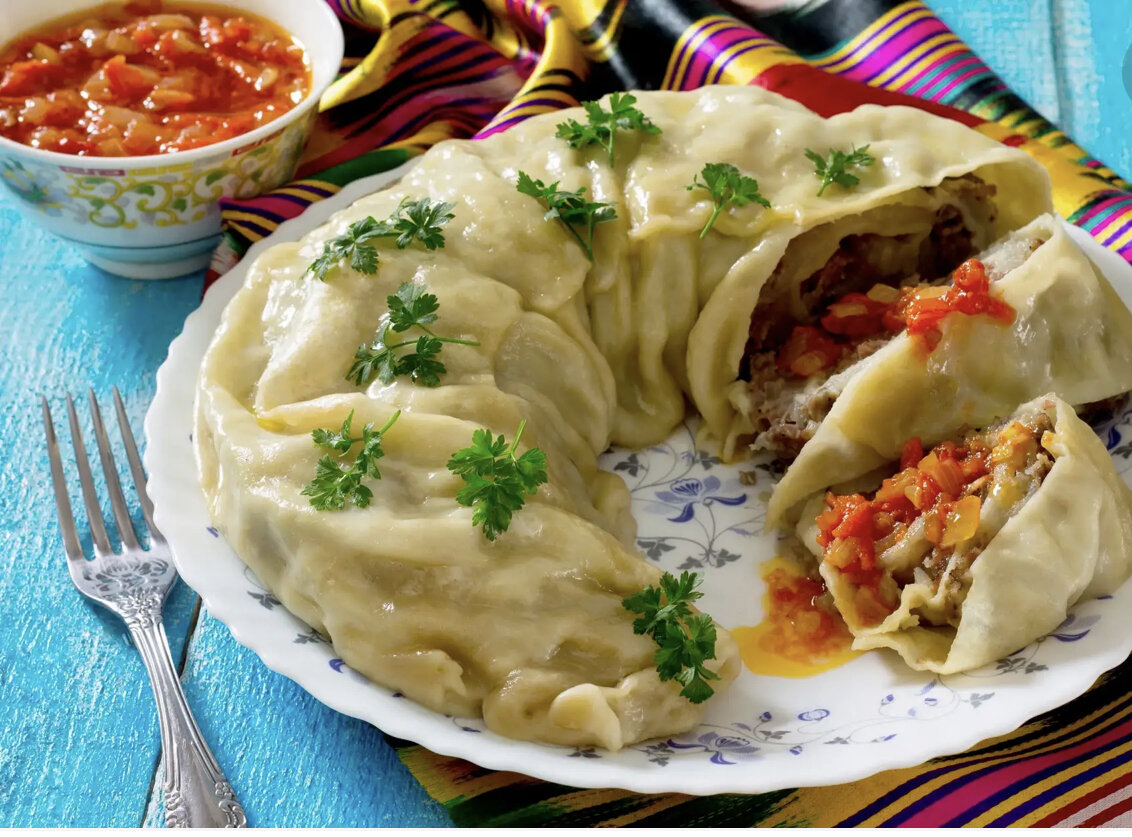 Это блюдо встречается в разных народных кухнях, бывает узбекский, таджикский, казахский ханум, они немного отличаются рецептом приготовления, но суть та же, ханум (ханума) – это паровой рулет из пресного теста и мясного фарша (а может быть ханум с добавлением овощей или тыквы).