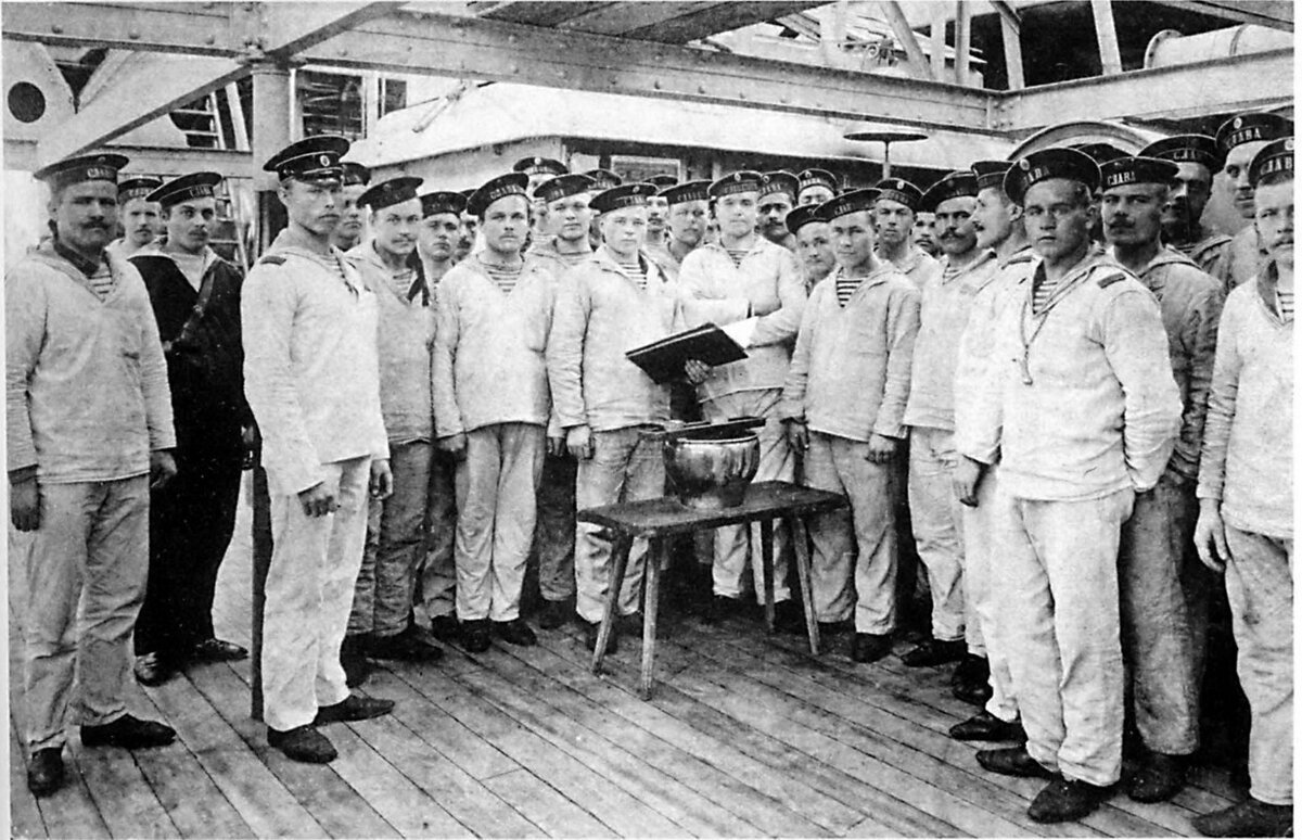 Команда: "Матрос М, выйти из строя!" Вышел, сирота... Замполит ему в ноги - рундук с вином: "Пей!"