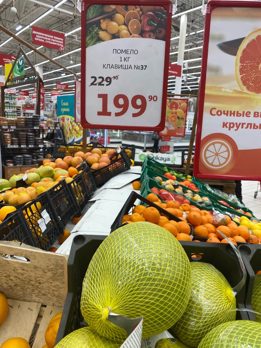 Итак, большой выбор фрукт по акциям. Например помело 1 кг за 199,90 р.