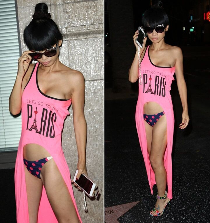 48-летняя актриса Бай Лин была замечена на улице в платье-футболке, под которой подразумевались хотя бы легинсы, однако она решила обойтись трусами.