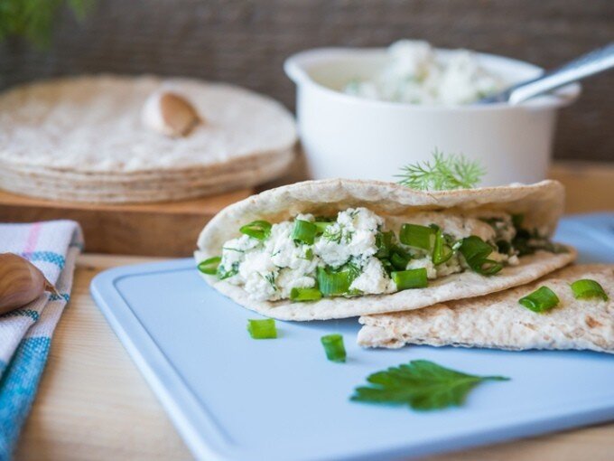 Как альтернатива разным готовым бутербродным пастам – паста из творога со свежей зеленью. Эта паста готовится всего 10 минут, а за счет майонеза в своем составе может храниться в холодильнике до трех дней. Закуску можно приготовить из творога любой жирности.