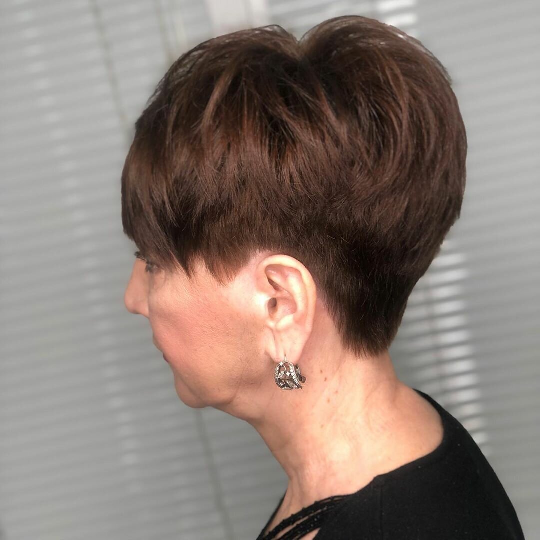 Стрижка «пикси» - одна из самых модных в этом сезоне. Она особенно подходит зрелым дамам с мягкими и тонкими волосами. Благодаря этой стрижке вы сохраните необычайно элегантный вид, придаст объем волосам и одновременно подчеркнет черты лица.