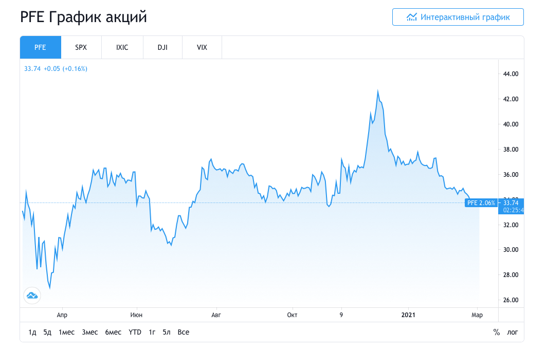 1. PFIZER- крупная американская фармацевтическая компания с дивесифицированной продуктовой корзиной. Текущая дивидендная доходность 4,5%. Цена акции подошла к уровню поддержек, считаю адекватными покупки от этих значений и ниже, по прогнозам аналитиков целевые значения стоисть порядка 41$за акцию в течении ближайших 12 мес. 1 шт по цене 33,72$