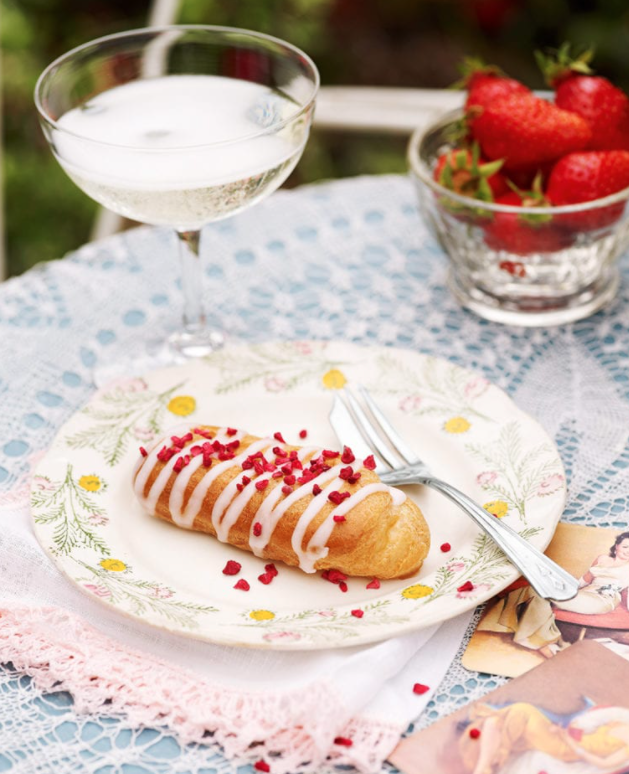 Наполненный заварным кремом и увенчанный сублимированной клубникой и использованием, этот рецепт клубничного эклера станет прекрасным дополнением к любому послеобеденному чаю.