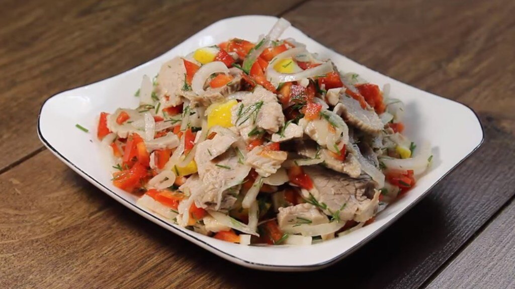 Это один из простых салатов из мяса и перца, готовить его просто и быстро, зато получается настолько вкусно, что он исчезает одним из первых со стола. Поэтому я всегда готовлю много, чтобы всем хватило.