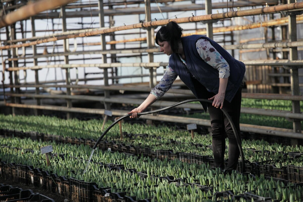 Подпись: В теплицах ульяновского горзеленхоза высадили 800 тысяч луковиц, а это примерно 233 тысячи праздничных букетов.