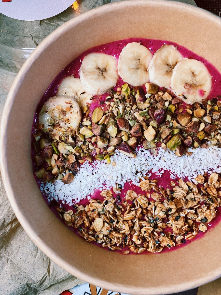 Rocket Japan — не только про обеды с ужинами, но даже про завтраки. Сладкие боулы в меню как раз такие: фруктовые смузи с йогуртом, гранолой, кокосовое стружкой, фисташками, семенами чиа… это же прекрасно! И жаль, что нельзя огласить имя того самого шефа, который это всё наготовил.