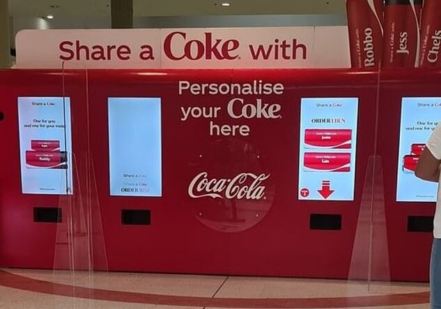 Рекламные торговые автоматы вызывали ажиотаж после того, как они появляются в австралийских торговых центрах Нового Южного Уэльса и Квинсленда. Устройства самообслуживания предлагают любителям безалкогольных напитков две бесплатные персонализированные банки Coca-Cola емкостью 250 мл.