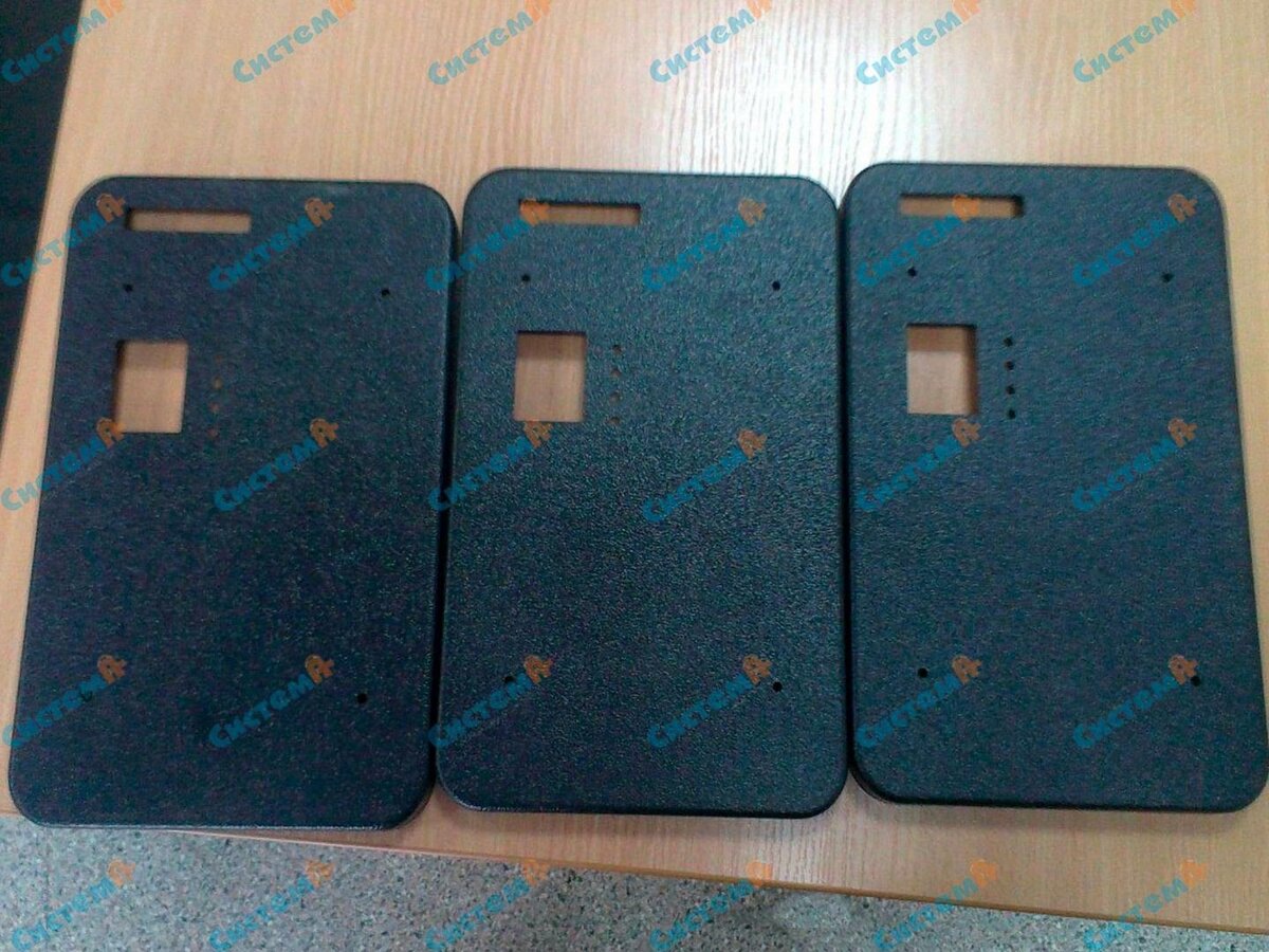 Доработка корпусов представляет собой создание отверстий различного дизайна и глубины в готовых изделиях, а также резка по размеру и шлифовка краев формованного корпуса. Эта работа выполняется частично вручную, частично по чертежам на оборудовании с ЧПУ. Отверстия можно создать лазером или фрезой. Метод обработки выбирается в зависимости от вида материала и параметров отверстия.