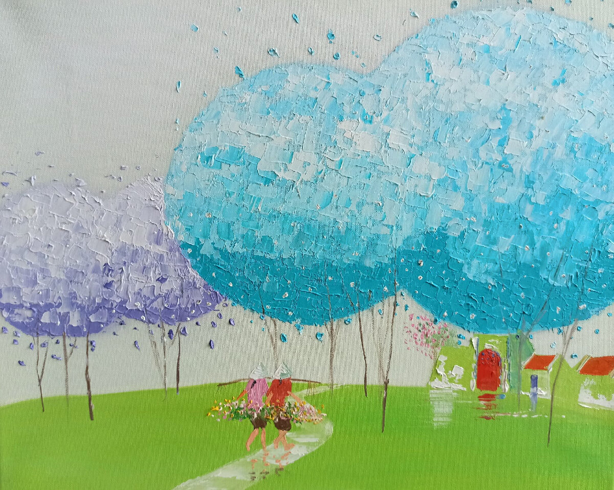 И действительно, чуть менее чем за 3 часа у нас получились симпатичные творения. Оставили их просохнуть на неделю, потому что масло сохнет долго и если сразу забрать, перепачкаешь всю одежду. Через 7 дней в моей квартире поселилась моя красивущая картина.