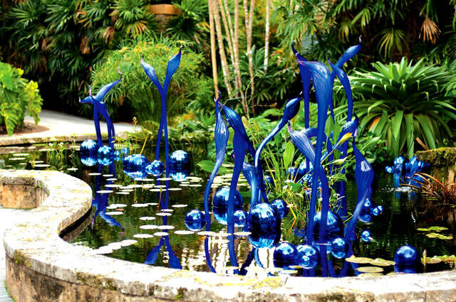 Дейл Чихули - признанный мастер-стеклодув. Он делает из стекла немыслимые вещи, зачастую помещая их в пространство сада, парка, оранжереи.