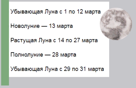 - Эпиляцию и депиляцию проводим при убывающей Луне 1-12, 29-31 марта.