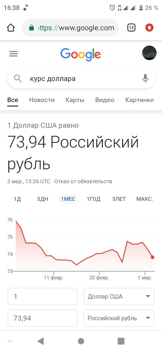 Переводить доллары на рубли я буду по 73 рубля скриншот сделан 3.03.2021 как и запись.