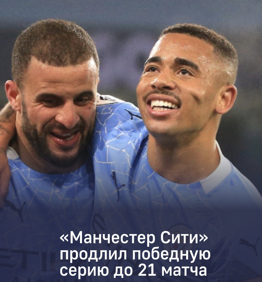 «Манчестер Сити» в матче 29-го тура чемпионата Англии на своем поле обыграл «Вулверхэмптон». В составе команды Хосепа Гвардиолы отличились Габриэл Жезус (он сделал дубль) и Рияд Марез. Еще один мяч в свои ворота забил полузащитник «Вулверхэмптона» Леандер Дендонкер. Эта победа стала для «горожан» 21-й подряд во всех турнирах.