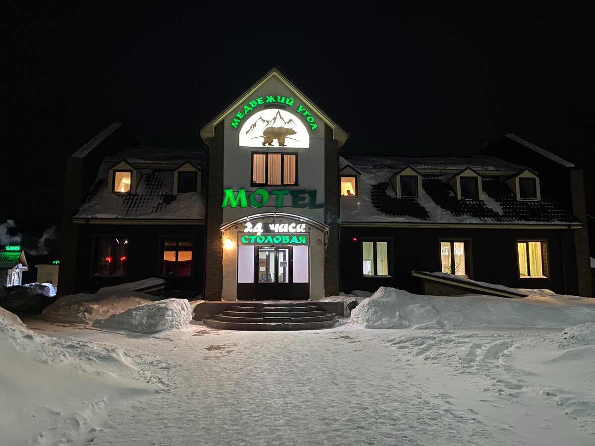Обратили внимание на красочный комплекс "Медвежий угол" в таежной глуши, тем более, что рядом стояли кучки дальнобойщиков.
