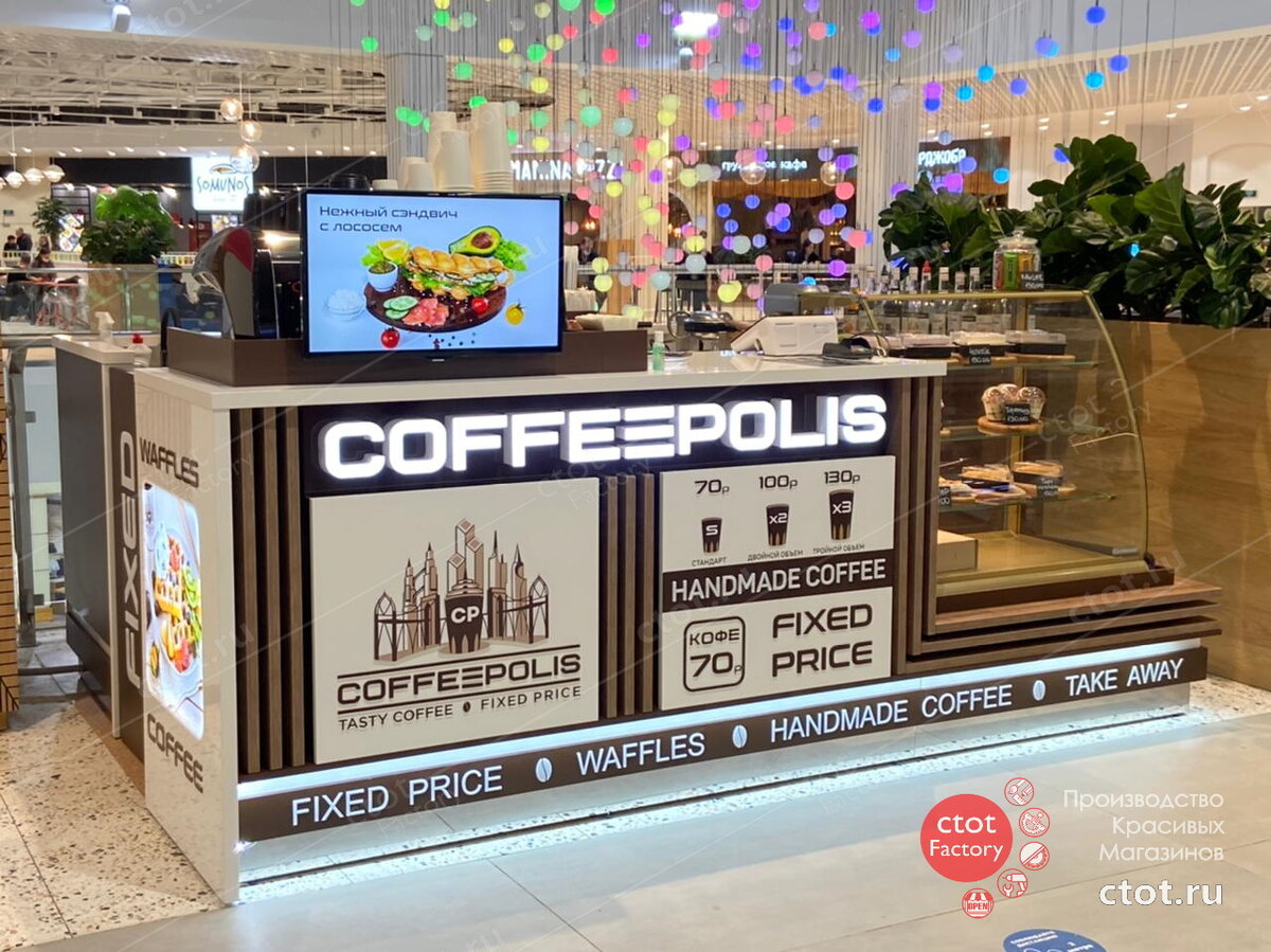 Друзья, встречайте новый успешно реализованный проект фабрики Ctot Factory - торговый островок для сети кофеен Coffee Polis в городе Казань