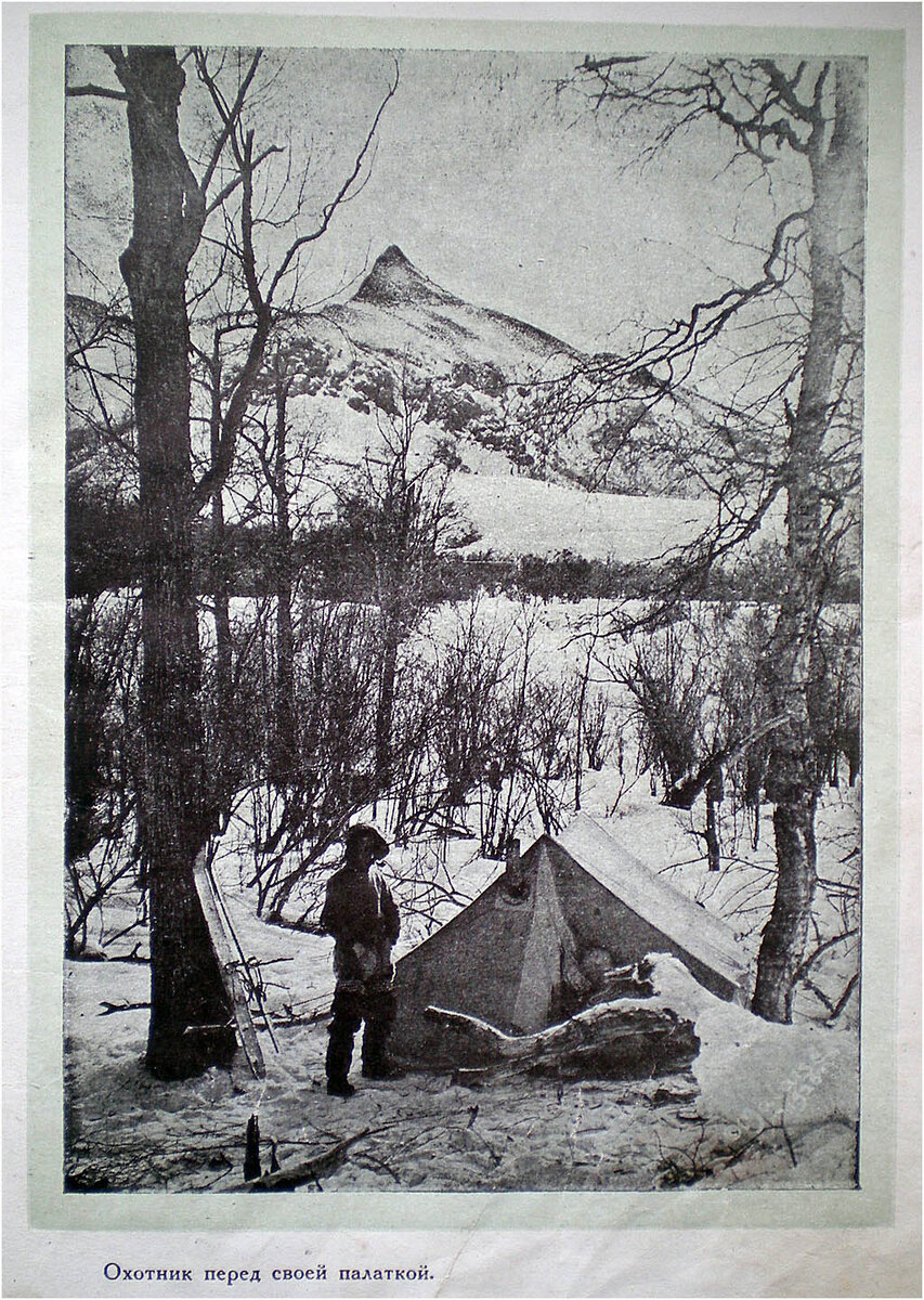 В полуверсте отсюда близ горячих ключей стояла палатка, где в плохую погоду я часто ночевал, не возвращаясь в юрту в плохую погоду. Отсюда я разглядел, что палатка стоит благополучно, и недавняя пурга её не опрокинула, чего я опасался. Было 3 1/2 часа. Я чувствовал голод, но поленился спуститься к палатке, и присев на пенёк близ ущелья, с аппетитом съел лепёшки, взятые из юрты. Ветер стих. Показались затянутые с утра белые хребты с чёрными полосами «выдувок» на вершинах. Глубоко под моими ногами шумела река. Вдали клубился пар над горячими источниками. Далеко была видна река Тюшевка с её капризным и величественным разнообразием видов: то тихая и покорная, покрытая льдом, то бурная и дикая, мчащаяся с шумом, то вновь успокаивающаяся. Солнце было уже низко. Пора спешить в юрту, пока ещё светло. Я пошёл по прямому направлению к юрте и через два часа был дома. Около юрты с одной толстой берёзы я надрал охапку корья — лучшие дрова для нашего камина. Каменная берёза обладает одним ценным свойством: верхний слой её потрескавшейся коры легко снимается большими, толстыми кусками, которые очень хорошо горят, поэтому в березнике нечего беспокоиться о дровах: даже ночью, найдя на ощупь ближайшую берёзу, можно заготовить сколько угодно топлива. Вокруг юрты все ближайшие берёзы были уже нами ободраны, поэтому мы, по безмолвному договору, не приходили домой без охапки корья, нам не приходилось рубить дров.