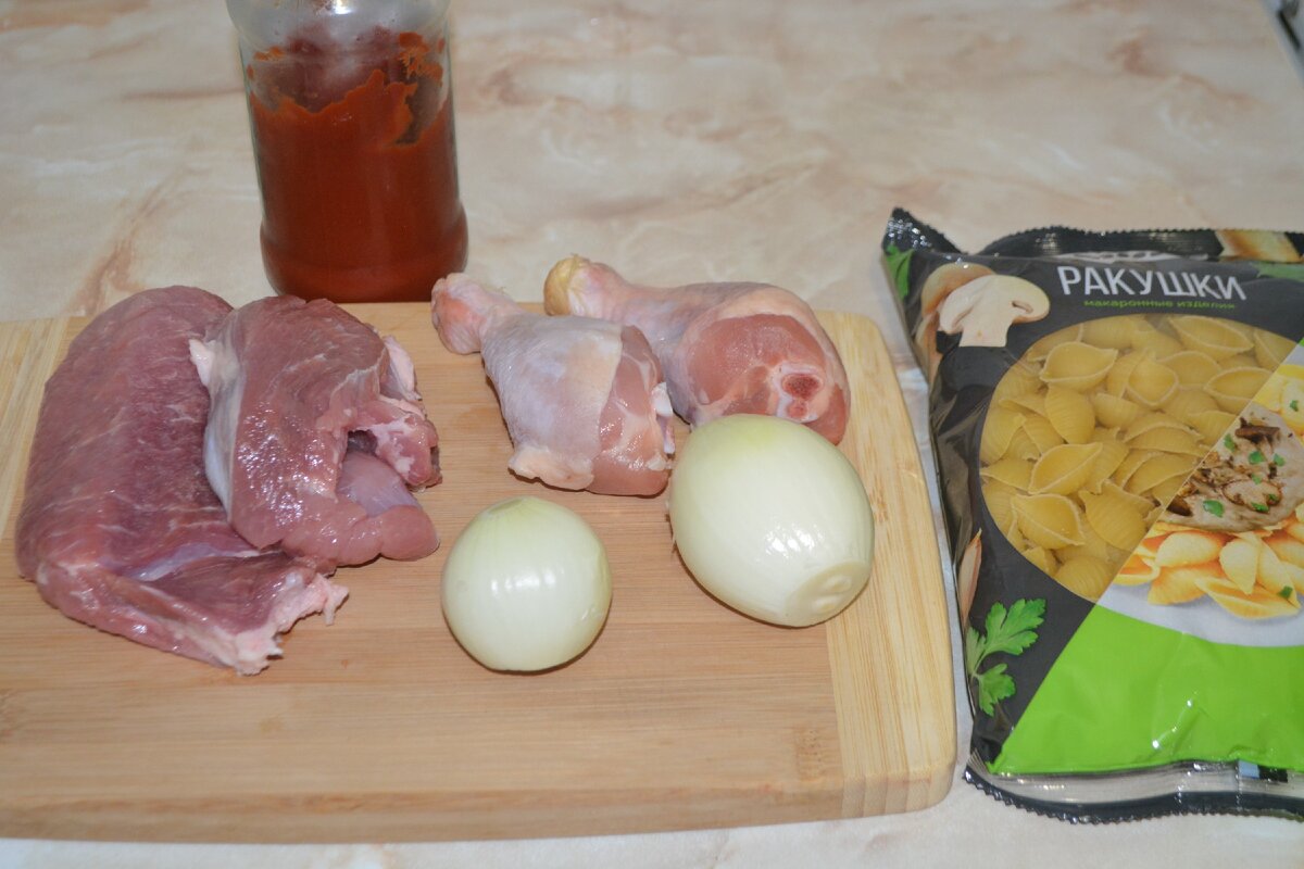 Кусочек свинины и 2 куриных голени (от них возьмём только