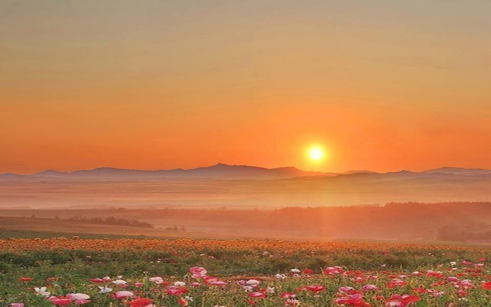 Он запечатлел в душе и переливы цвета в прекрасных венчиках распустившихся цветков, и всю долину, и голубоватую пронизанную утренним солнечным светом дымку лёгкого тумана у дальних гор…