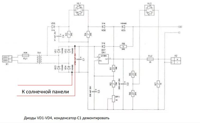 Солнечная энергетика как мы знаем является затратным, и вряд ли окупиться за короткое время. Но в некоторых случаях применение солнечных электростанции в электроснабжении могут быть целесообразным о которым хочу рассказать. Например полное отсутствие электро снабжение. В садово огородном обществе отсутствовал электроснабжение, а по выходным я часто ночевал. Задача была простейшая, освещение на базе трех светодиодных ламп, зарядка телефона. СЭ состоял из одной поликристаллический панели на 30 Вт и кислотных аккумуляторов на 7,5 Ач. Обошелся без контроллера. Вместе контроллера использовал ББП-20 (теперь в охранных системах используются похожие приборы РИП) который был демонтирован с охранный системы использованного в квартире у моего знакомого. Напряжение с солнечной панели подал на выход диодного моста зарядного устройство ББП-20, а вторичную обмотку трансформатора отключил от схемы путем демонтажа диодного моста. Параллельно штатному аккумулятору ББП-20 подключил еще два аналогичн