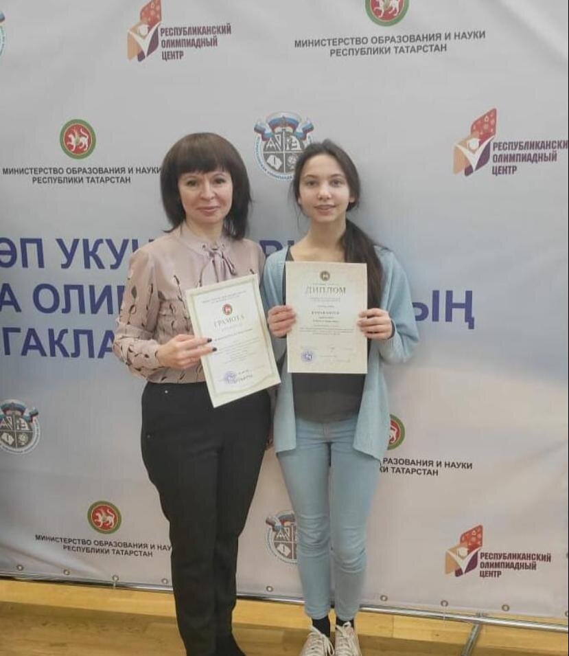 Ученица 11 класса МБОУ СОШ №3 им.Т.Гиззата Рената Арасланова стала призером и была награждена грамотой. Ренату к олимпиаде подготовила Кудрявцева Наталья Валентиновна.