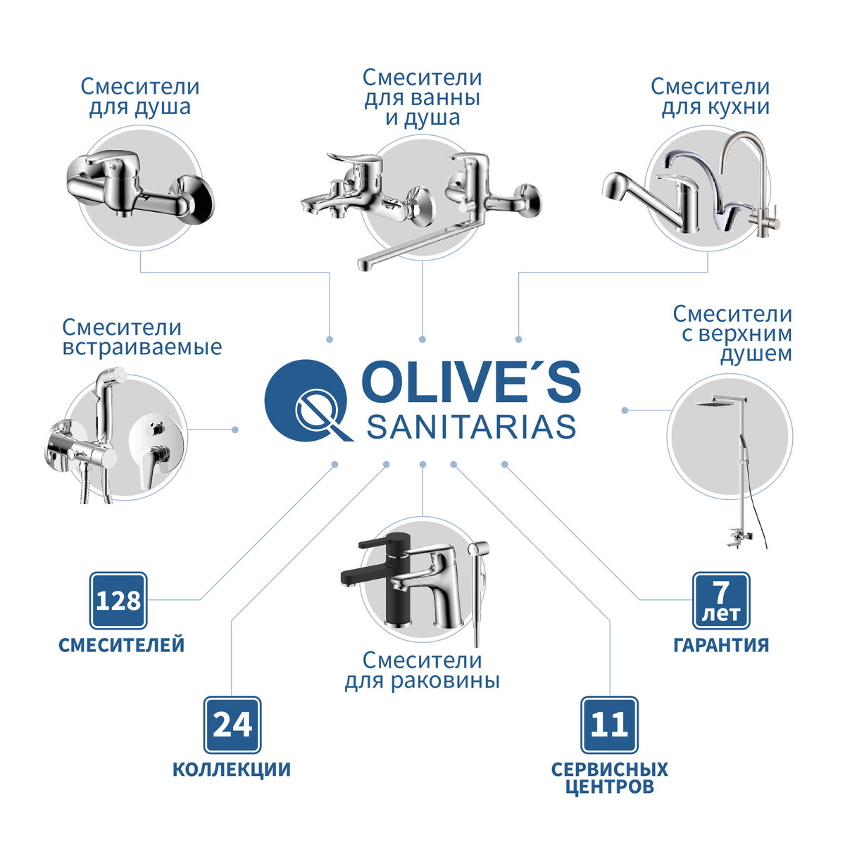 1. Модельный ряд смесителей OLIVE’S состоит из 128 смесителей в 24 актуальных коллекциях, большинство серий включает в себя смесители для ванной, кухни и раковины.