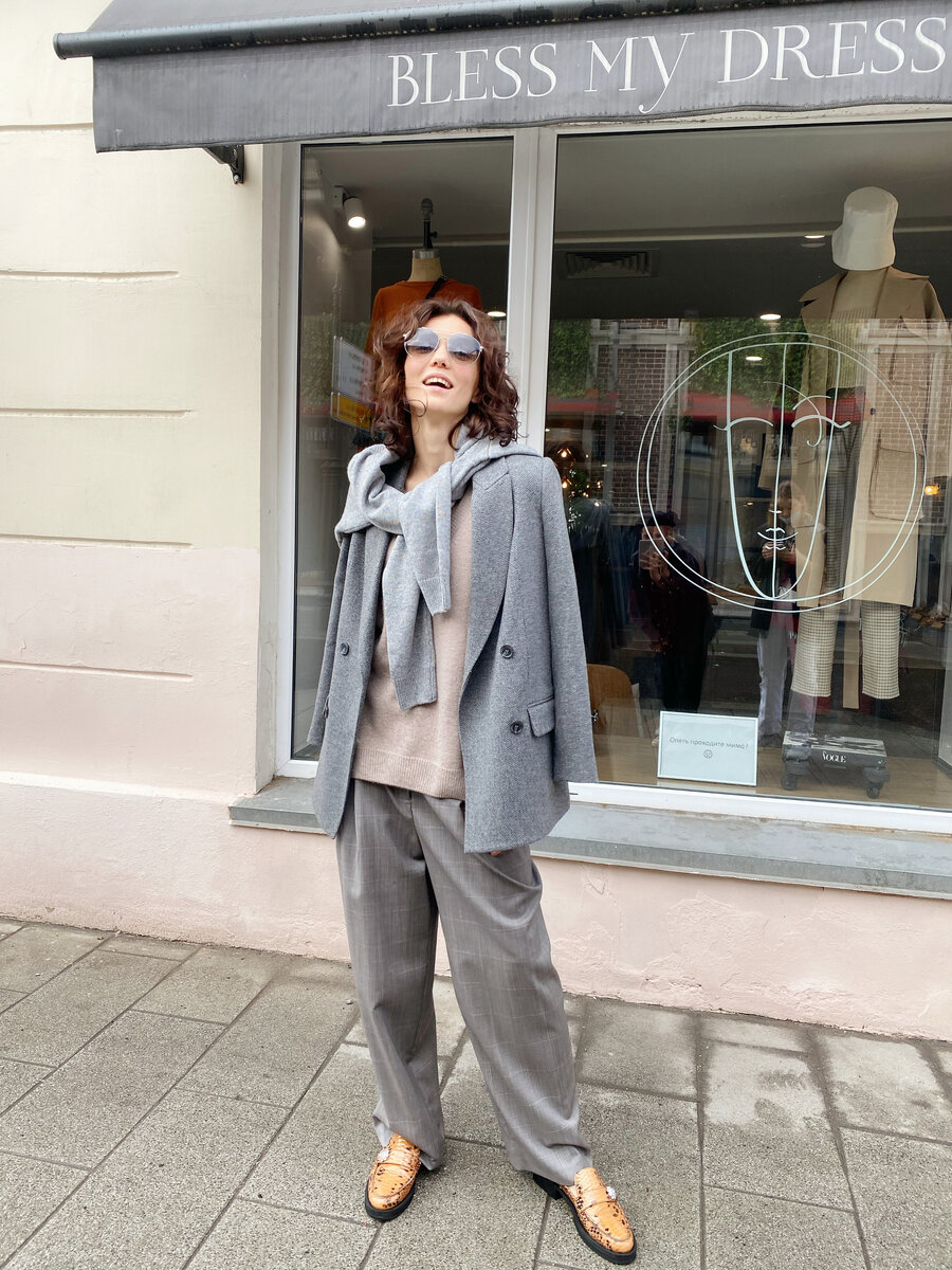 Дополнительный слой не только спасет от холода, но и сделает образ интереснее. Например, надеваем самую простую комбинацию – лонгслив и брюки и добавляем шерстяной жакет, чтобы добавить образу актуальности ✔️