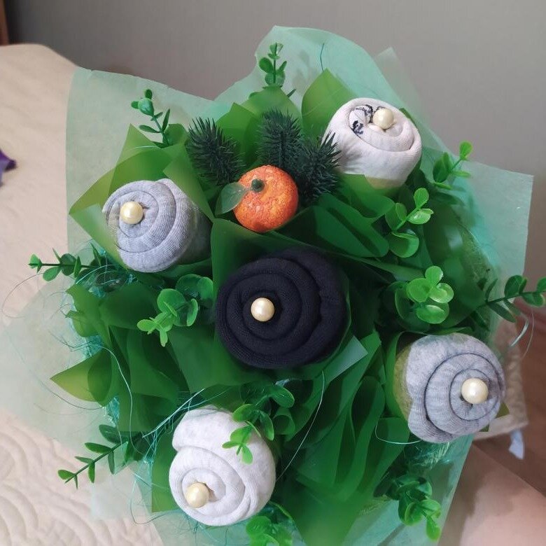 Дарим обязательно на праздник. И не в подарочных пакетах или коробках, а сооружаем нечто грандиозное! Букет из трусов и носков — это перебор, вам не кажется?
