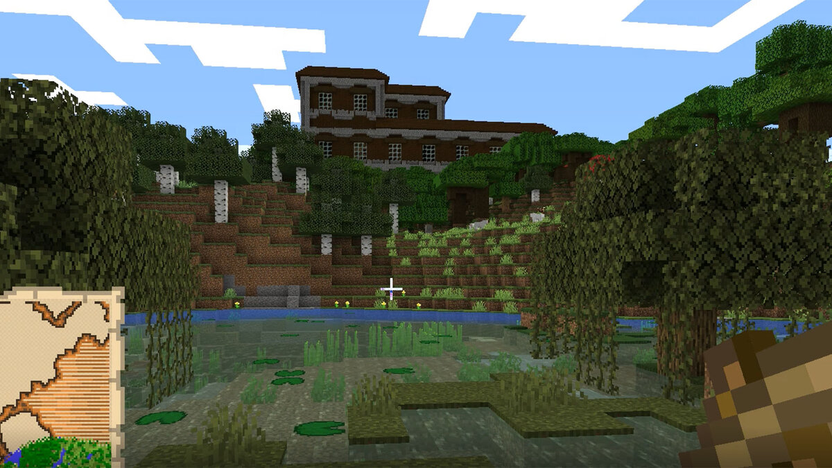 Затем наша условно контурная карта стала превращаться уже в настоящую физическую, и тут перед моими глазами предстал лесной особняк! Это, пожалуй, самое большое из генерируемых строений в Верхнем мире.