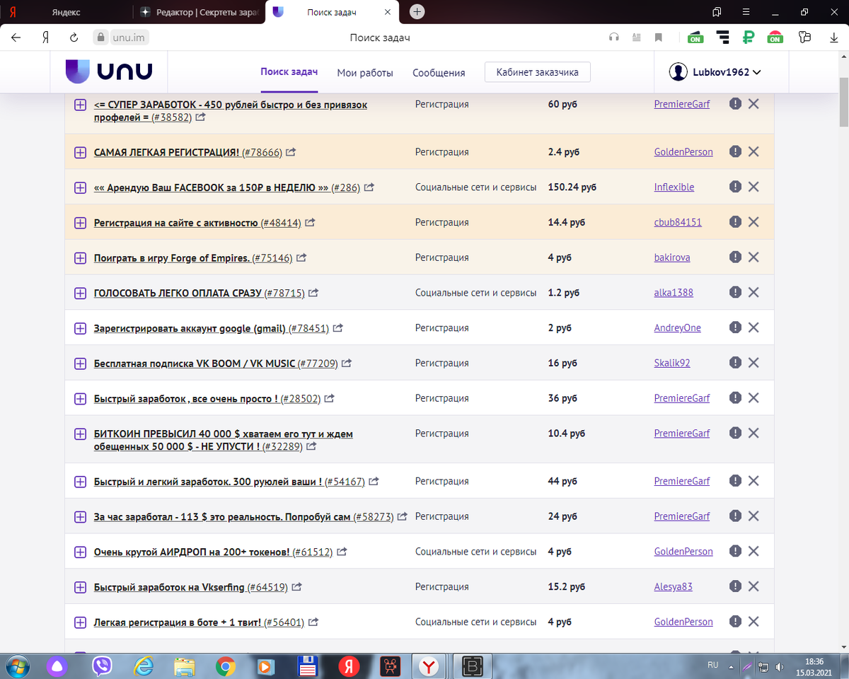На UNU можно заработать на выполнении простых заданий за высокую оплату. Задания самые разные: лайк, подписка, просмотр видео, клики по рекламе, регистрации и т. д.