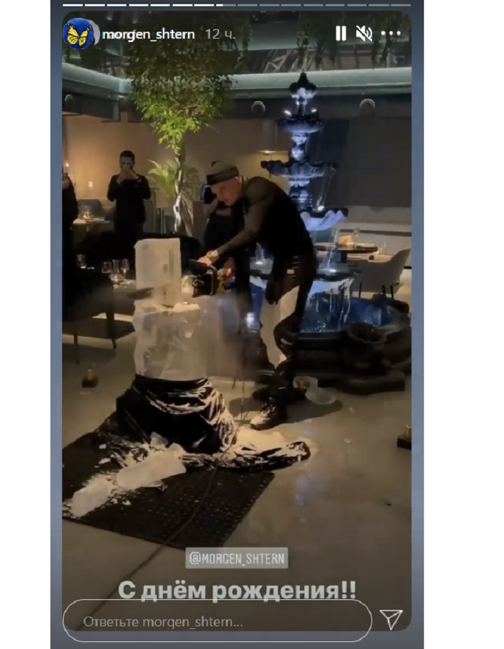 Вечеринка состоялась в собственном ресторане артиста, куда он пригласил друзей, знакомых и коллег. Любимая девушка Моргенштерна, которую зовут Дилара, преподнесла ему ледяной куб с бутылкой элитного алкоголя. Чтобы достать ее,