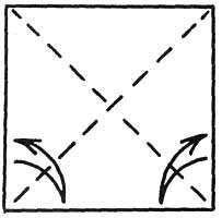 - После чего необходимо раскрыть и расплющить оба кармана, создаем сгиб по обозначенным на картинке выше линиям. Обе запланированных точки должны совпадать.