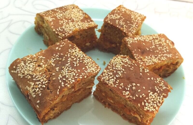 11.Закройте сверху начинку второй половиной теста. По желанию можно посыпать еще кунжутом.