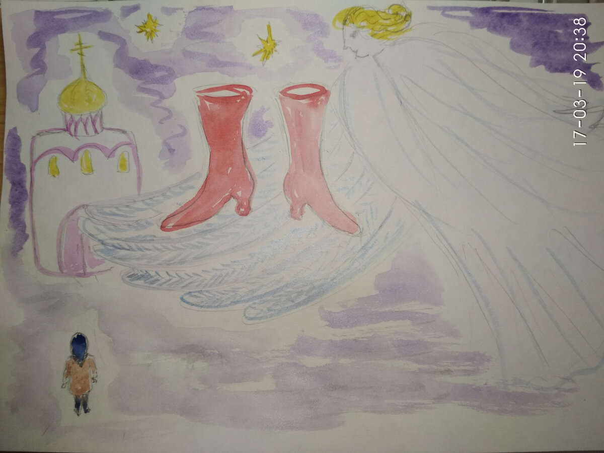 И вот перед Рождеством приходит она к сельскому сапожнику дядьке Михею и приносит свои старые прохудившиеся сапожки.