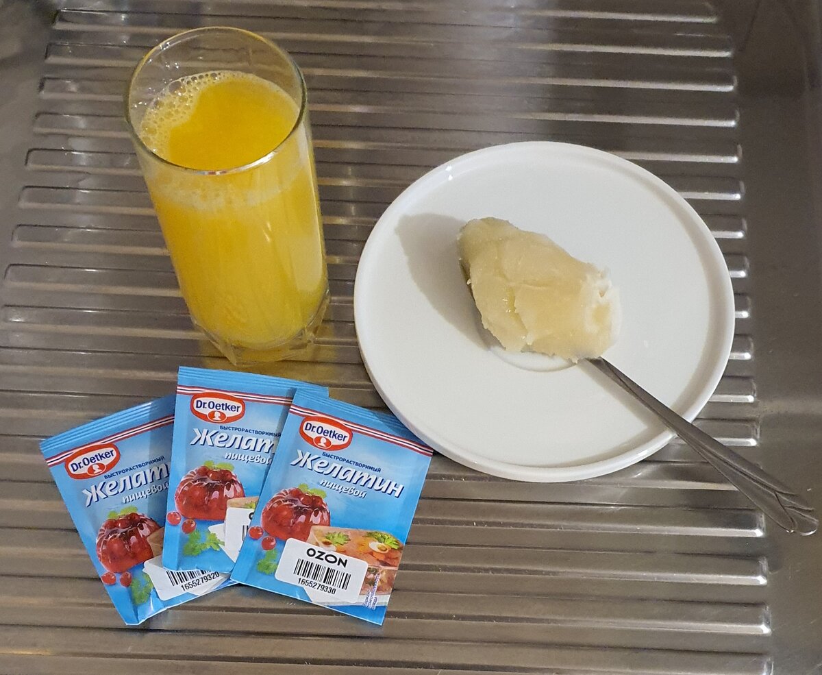 - свежевыжатый апельсиновый сок (можно взять любой, от сока будет зависить цвет вашего мармелада) 200 миллилитров