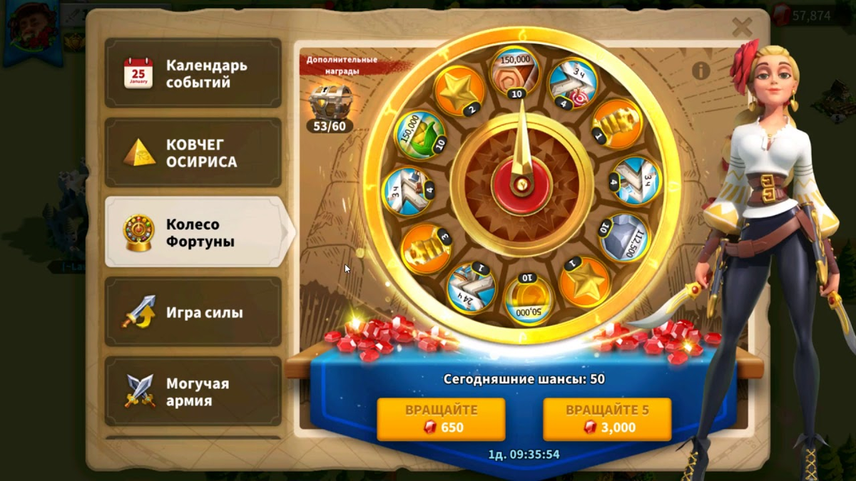 В этом событие все игроки могут принять участие, правители крутят рулетку за игровую волюту "самоцветы". Но не стоит говорить что это только для донатеров так, как в этой игре можно спокойно нафармить эти "самоцветы" уничтожая варваров, выполняя задания и фармя самоцветы на карте. Прокручивая эту рулетку игроки могут получить различные награды такие, как ускорения, ресурсы, звезды на прокачку командиров, но самое главное это скульптуры легендарного командира, в зависимости от того на кого сейчас идет рулетка.
