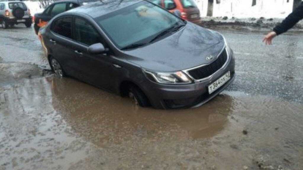 Расскажу как это получилось у меня. Заезжал к теще во двор после дождя. Сто раз там ездил и знал каждую яму на дороге. После каждого более менее продолжительно дождя у них там образуется лужа. Причина, постоянно забитый сток ливневой канализации. В этот раз проезжая по этой луже я проваливаюсь передним левым колесом в яму. Всё, автомобиль накренился и встал. Выхожу из машины, представьте вода стоит по нижней кромке двери, а я в обычных кроссовках. С горем пополам выбрался, смотрю на свою машину со стороны. Она стоит как «Титаник», готовая погрузится в водную стихию. Люди тут же начали давать советы, вызывай милицию, жалуйся на дорожников. А мне надо ехать дальше по своим делам, а не виноватых искать. Хорошо у меня трос в кузове лежит металлический и отзывчивый водитель на «УАЗ-Патриоте» согласился выдернуть мой автомобиль из ямы. В итоге вытащил «Патриот» меня, спасибо человеку, даже денег отказался взять. Осмотрел я свою машину, вроде все на месте. Выручила защита двигателя. Когда колесо провалилось в колодец, автомобиль просто упал на защиту и на ней повис. Можно сказать легко отделался.