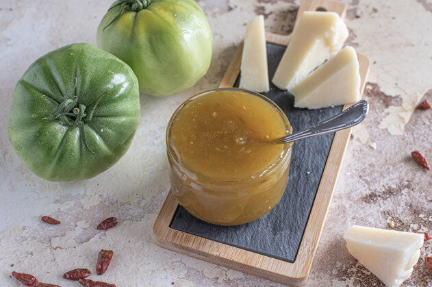 #Варенье из зеленых томатов - идеальный соус для пикантных и выдержанных сыров и красного мяса, для аперитивов и фуршетов. Вкусный и оригинальный, он удивит всех сладким вкусом сахара, прекрасно сбалансированным острым и слегка кислым вкусом перца чили и белого винного уксуса.