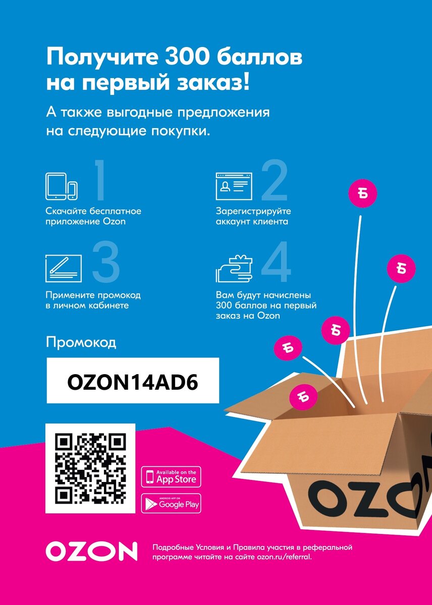 Щедрый подарок от OZON для НОВЫХ клиентов +300 баллов (рублей).