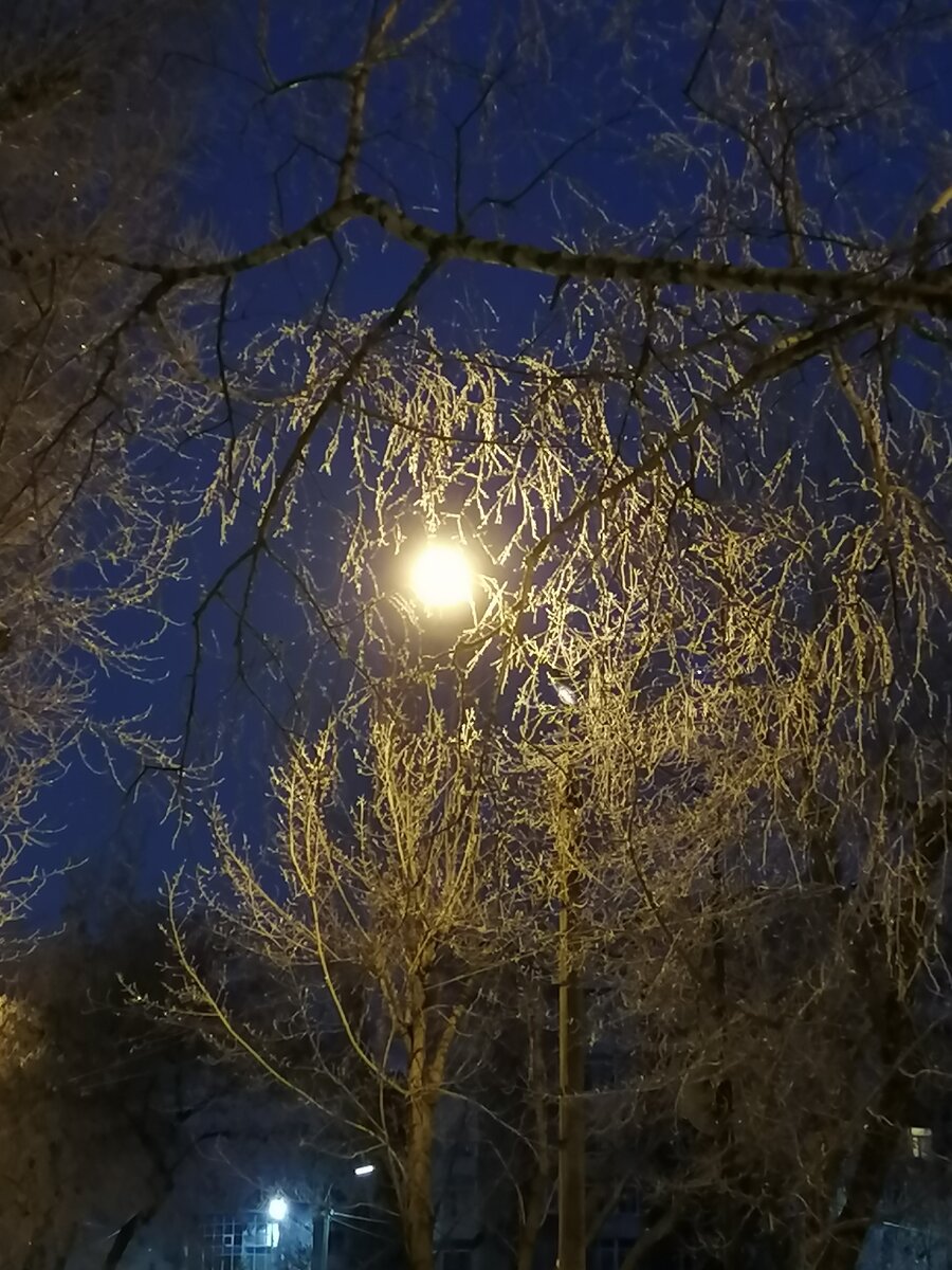 В серебряном свете луна освещает