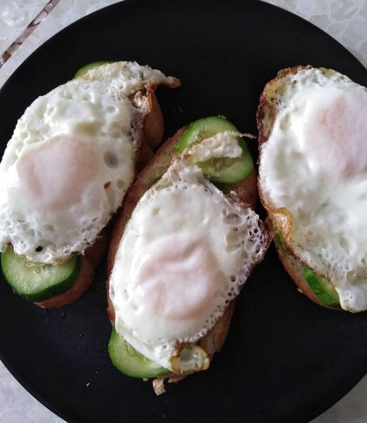 Порезанный колечком огурчик и жареное яйцо, с жидким центром-ммммм, вкусняшка!