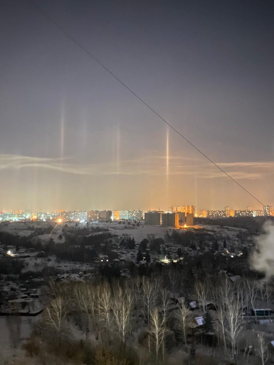 Световой или лунный столб — это уникальное атмосферное явление, оптический эффект, который представляет собой вертикальную полоску света, тянущуюся от Солнца во время его заката или восхода.