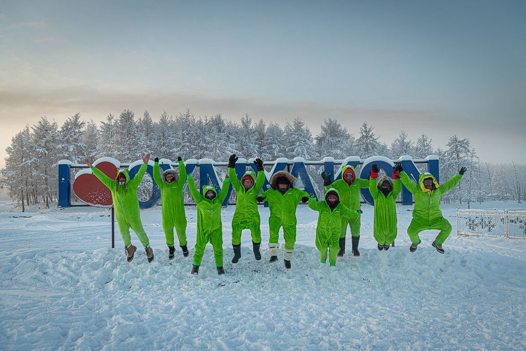 Но думаю, звание самых нарядных туристов на Полюсе холода мы заслужили.