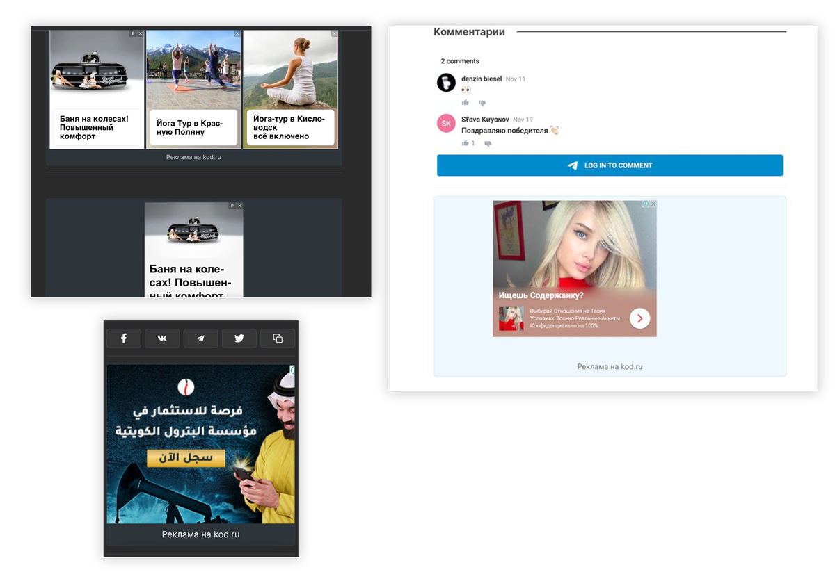 «Код Дурова», к счастью, отказался от всех рекламных систем в пользу прямой продажи рекламы — это повлекло за собой исчезновение сомнительных объявлений: